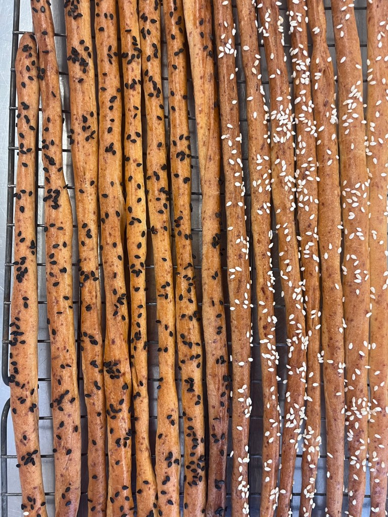 My dad was an expert at a classic French salad dressing. I’m not sure he would have been swayed by the idea of Green Goddess, at least not if he was on salad duty. Meanwhile, there were deeply felt memories of my mum this week during the bread demonstration and making. She made bread, by hand, to the same recipe, nearly every week of her adult life. And the image of her doing so is firmly and forever fixed in my mind. I think it’s unlikely she would have been impressed by my Grissini attempt this week, unevenly shaped and baked as they were. Hopefully I can do a better job of scones next week!