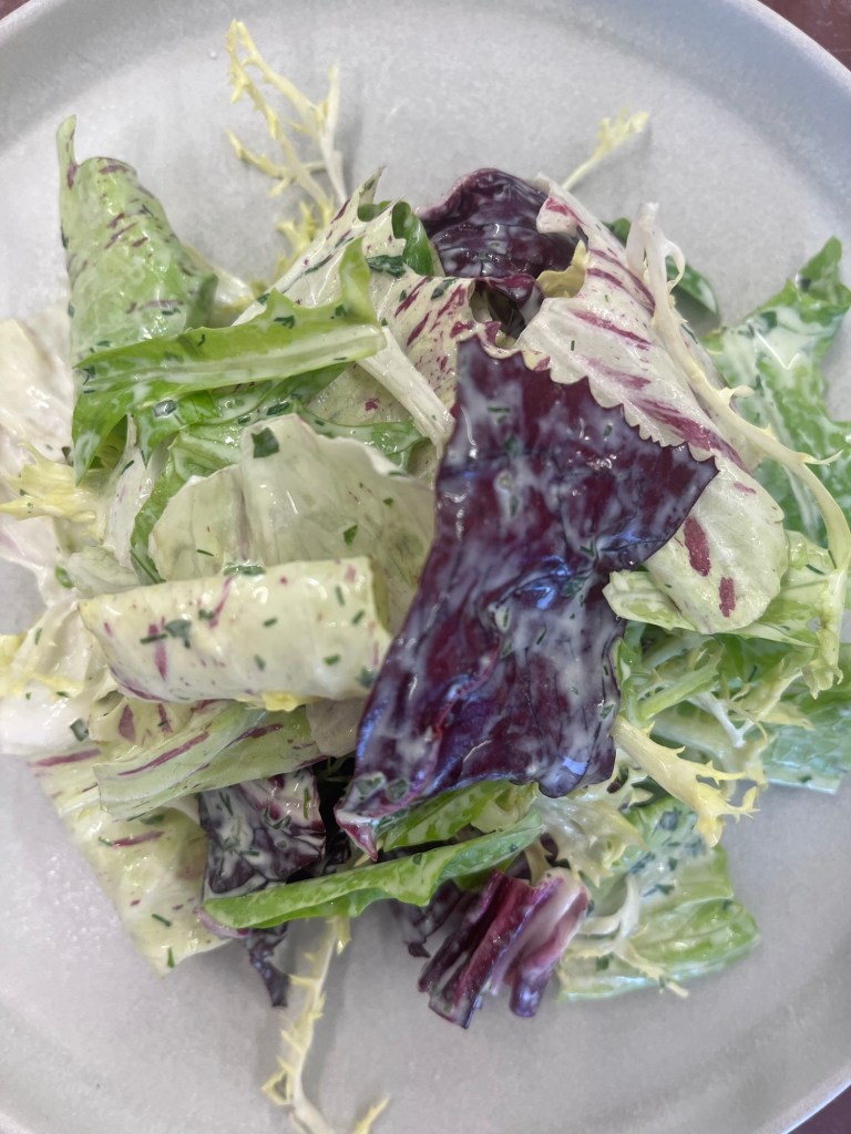 Our first formal assessment looms large in the week ahead, with everyone leaving school on Friday evening ordering chickens-a-plenty to practice jointing over the weekend. A more relaxed peer assessment was experienced on Friday afternoon following an enjoyable kitchen session making pan-cooked pizza using pizzaiola sauce and dough we had prepared earlier in the week, alongside a Green Goddess dressing using the mayonnaise we had whipped up by hand (yes!) using a small sauce whisk. Making mayonnaise by hand felt strangely akin to the practice of simultaneously patting your head and rubbing your tummy i.e. tricky! Whilst whisking the egg yolk, we had to continuously transfer drops of oil from a gastro into the egg, at speed, and without stopping. By the end of the session, I had a very oily bench, and thankfully a tasty, and importantly, not split, mayonnaise. With somewhat tired wrists, we moved swiftly to making a roux and basic white sauce. Quite the arm work-out!