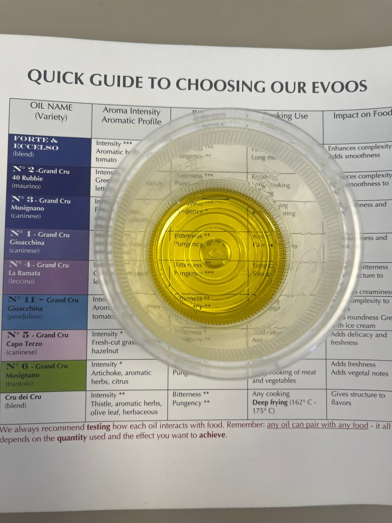 The week ended with an extra virgin olive oil tasting. Our guide, Paolo, was a delight and an inspiration. Having been a consultant corporate strategist all his life, he and his wife chose to retire to Italy in a Roman villa of their own design and making. The grounds of said villa were blessed with olive trees and at some point those trees became acres and a big business. Sadly, his wife died but the memory of her is kept alive in the name of the business: I&P – Ianna (her name) and Paolo (his). Paolo taught us how to make olive oil by hissing through our teeth to ensure even distribution across our taste buds. Much coughing ensured but not enough to mar the fruity, peppery flavour. Paolo informed us he was somewhere between 80 and 90. He looked fantastic which he assured us was down to drinking a spoonful of extra virgin every day on waking. Simple as that! Remove your bottle from the kitchen and pop it on your bedside table for a long and prosperous life.